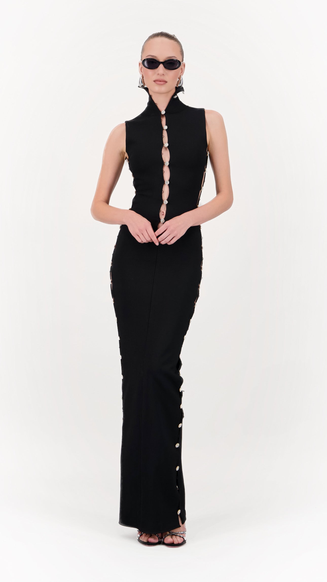 Robe longue à ouvertures bijoux stretch